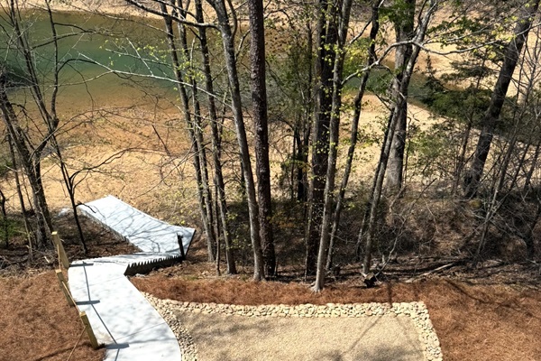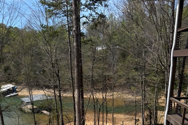 Aerial view of the lot, including estimated dock location. Cove is approximately 180ft wide at full pool.